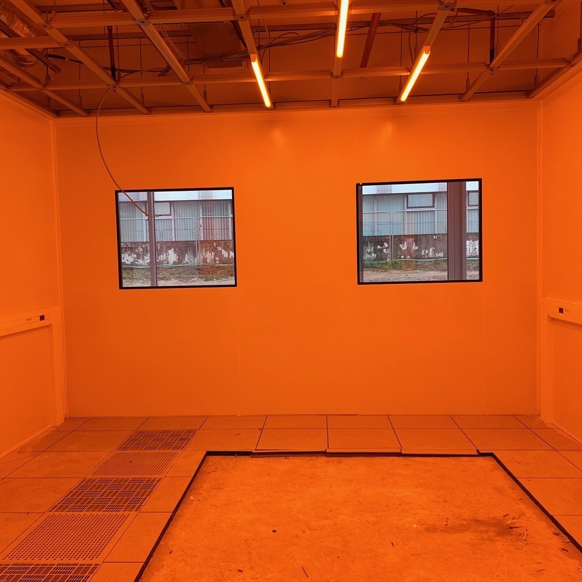 - Les locaux répondent aux exigences de microélectronique (doigts gris, film inactinique sur l’éclairage et le vitrage, etc.).