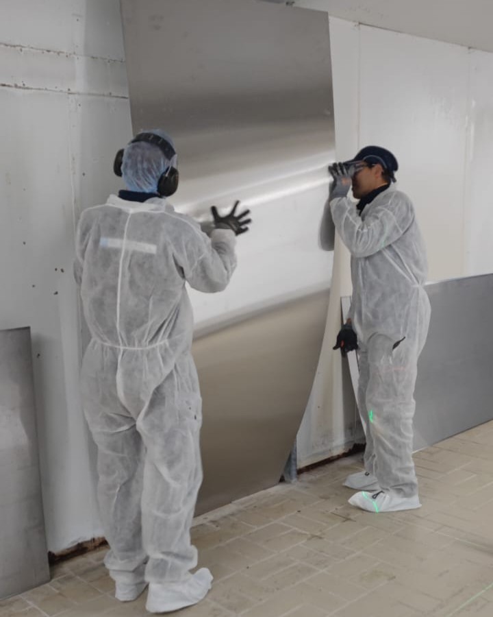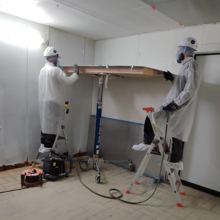 - Remplacement des plinthes de remontée en carrelage par des plinthes inox